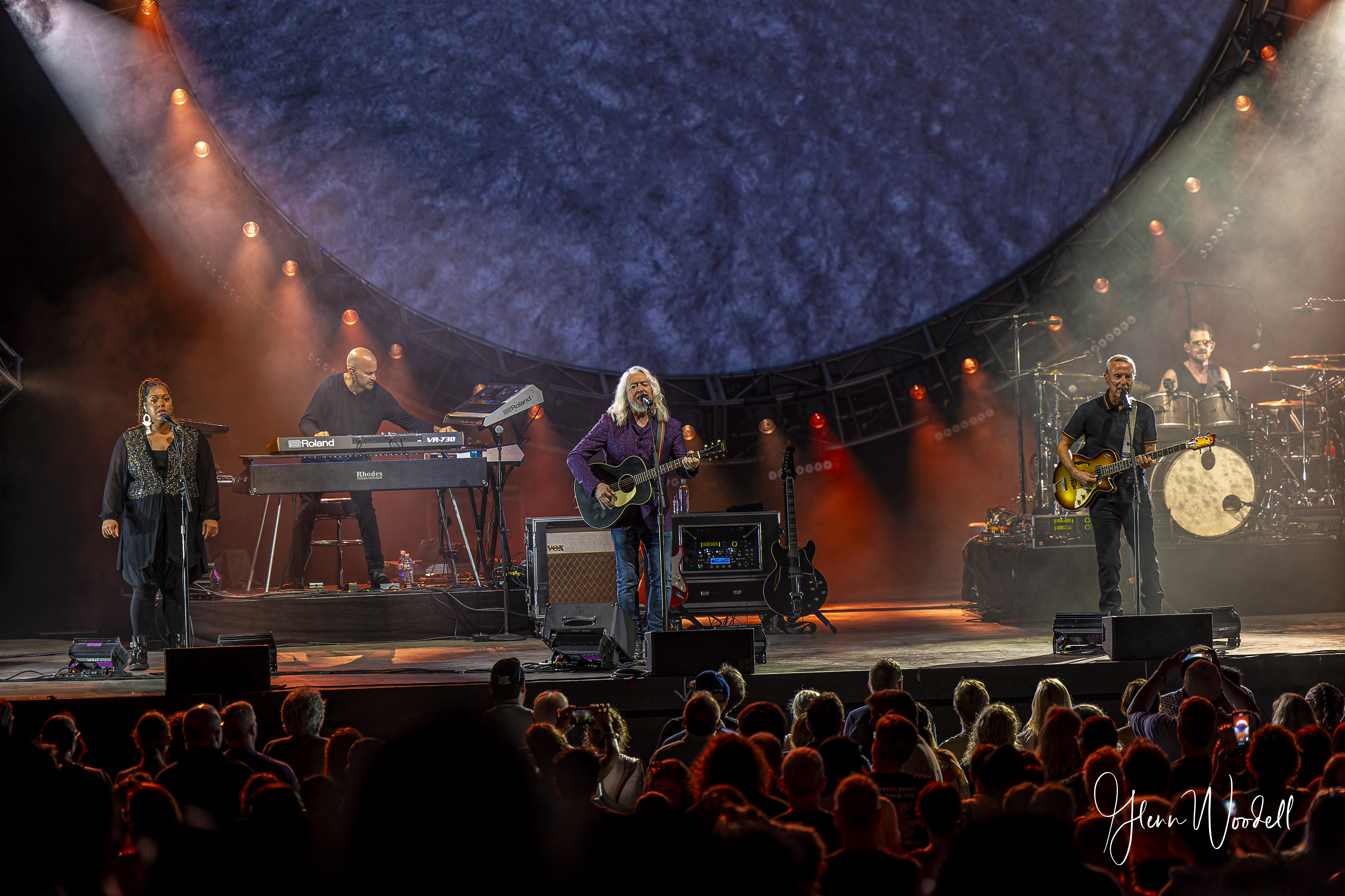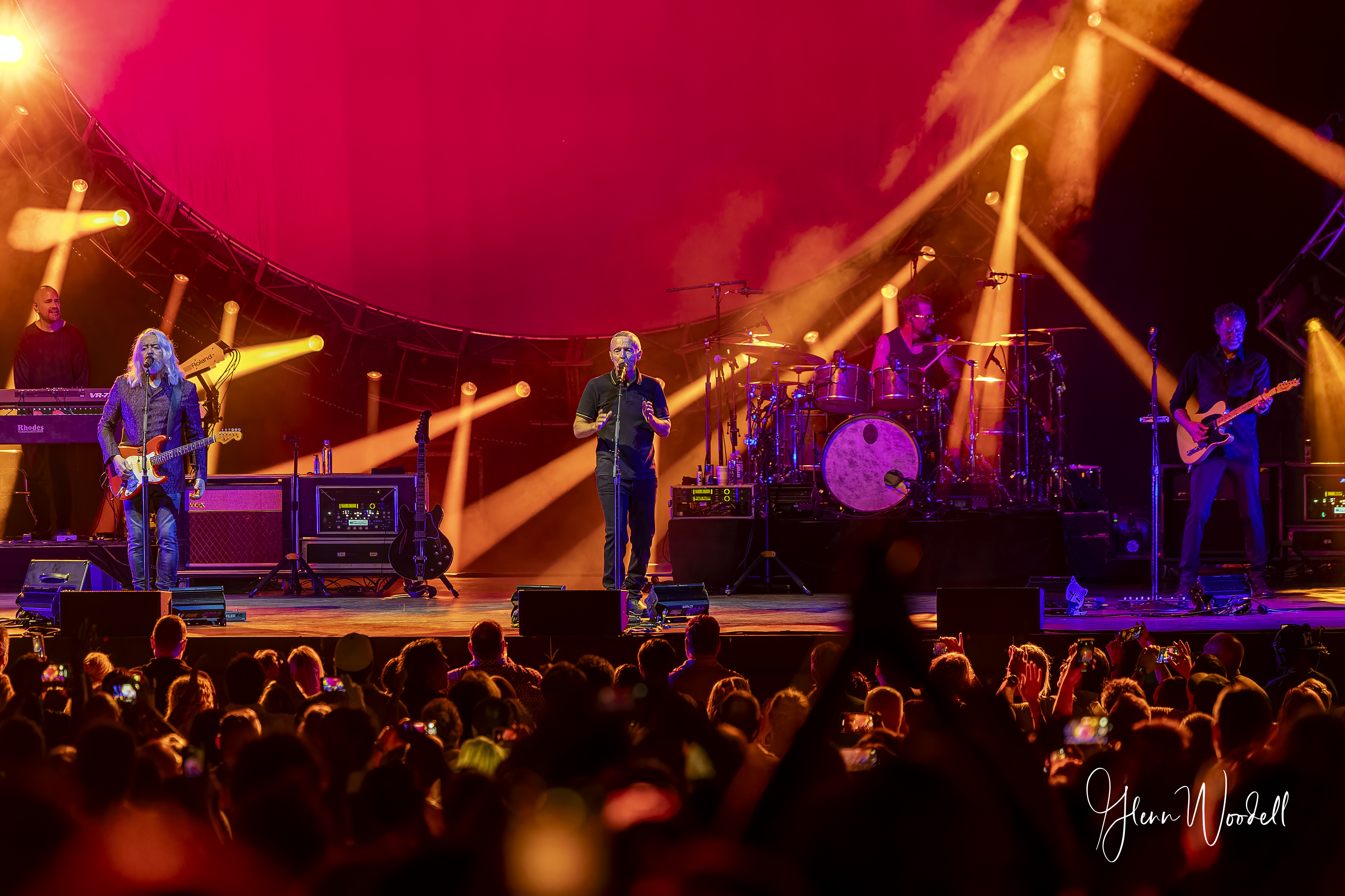 As a photographer, I’ve taught myself to always bring all my gear and be prepared for everything. I broke that mantra for this show and paid the price. I usually only shoot shows where I can shoot from the photo pit and tend to avoid those where the photographers are given little chance of creativity by being shoved back to the sound board. This show unexpectedly fell into the second category. And even though I do have gear that will allow me to get close up shots, the distant viewpoint means all the shots would look pretty much the same anyway – just tighter. So, if the management of Tears for Fears (and any other band) is reading this, please let us professionals up front where we can get let our creativity soar (for three songs) and compete with the masses who are allowed to shoot with their modern point-and-shoot cameras and their Giga-pixel, Mega-cell phones for the entire show.