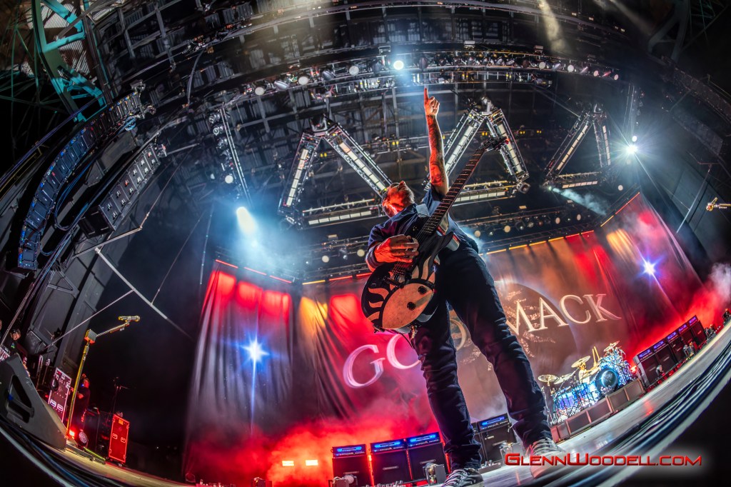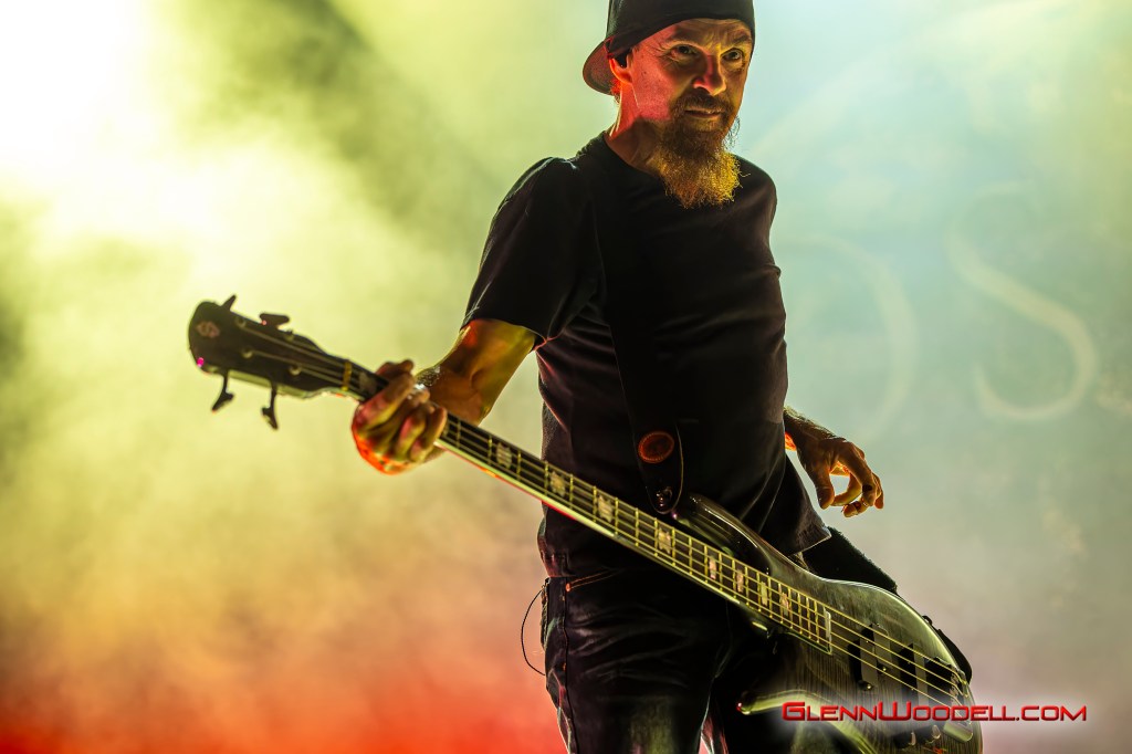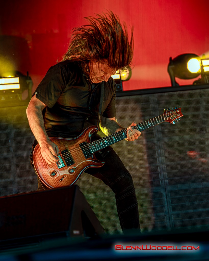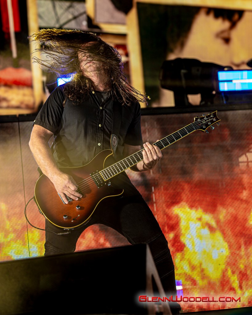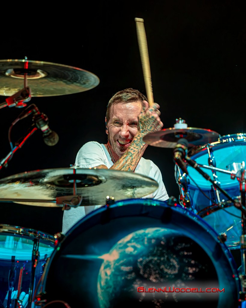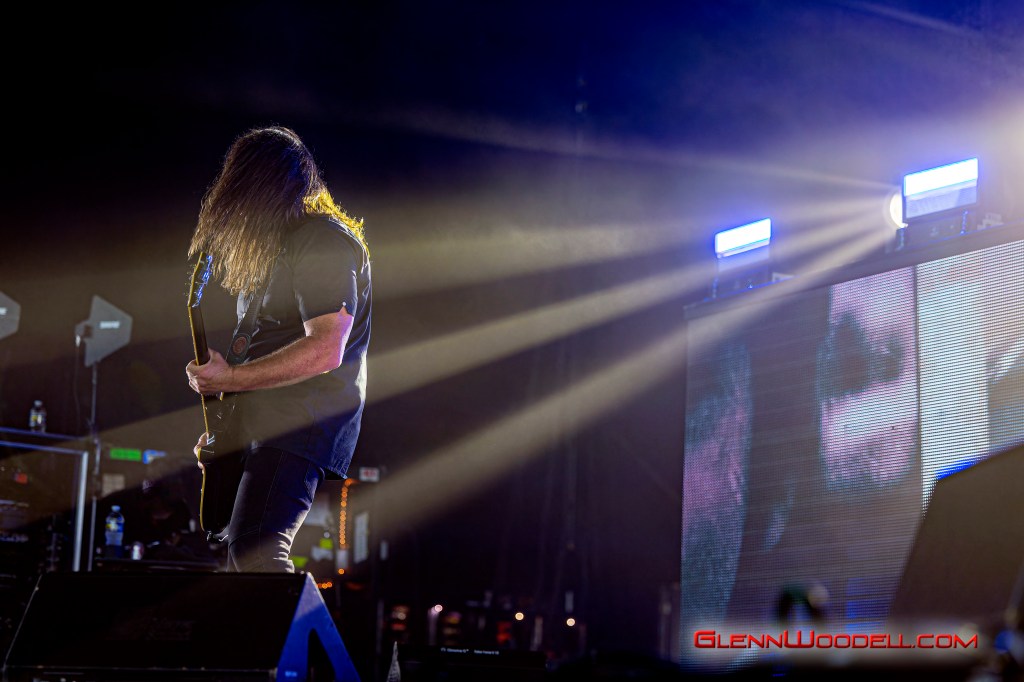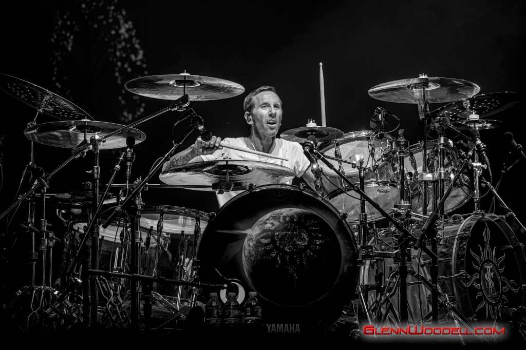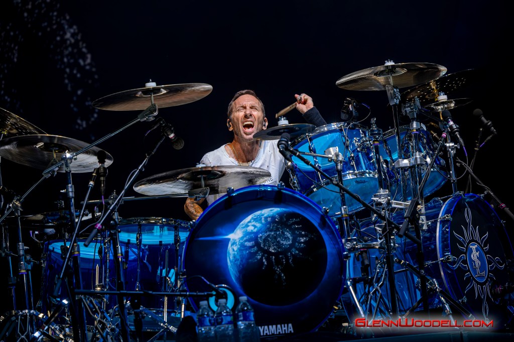 The highlight of the evening was the drum battle with drummer, Shannon Larkin, called, Batalla de los Tambores. It’s been performed in the past with some changes but I had never seen it until this show. Near the end of Voodoo, Sully left the stage. Shannon started the drum show while his drum riser shifted off-center. Sully’s drums came through the curtains with him playing the bongos in unison with Shannon’s drums. From there, the two played some amazing drum riffs over the next nine minutes, sharing pretty impressive drum stick tosses, and broke into the familiar songs, AC/DC’s Back in Black, Aerosmith’s Walk this Way, Metallica’s Enter Sandman, Led Zeppelin’s Moby Dick, and Rush’s Tom Sawyer.