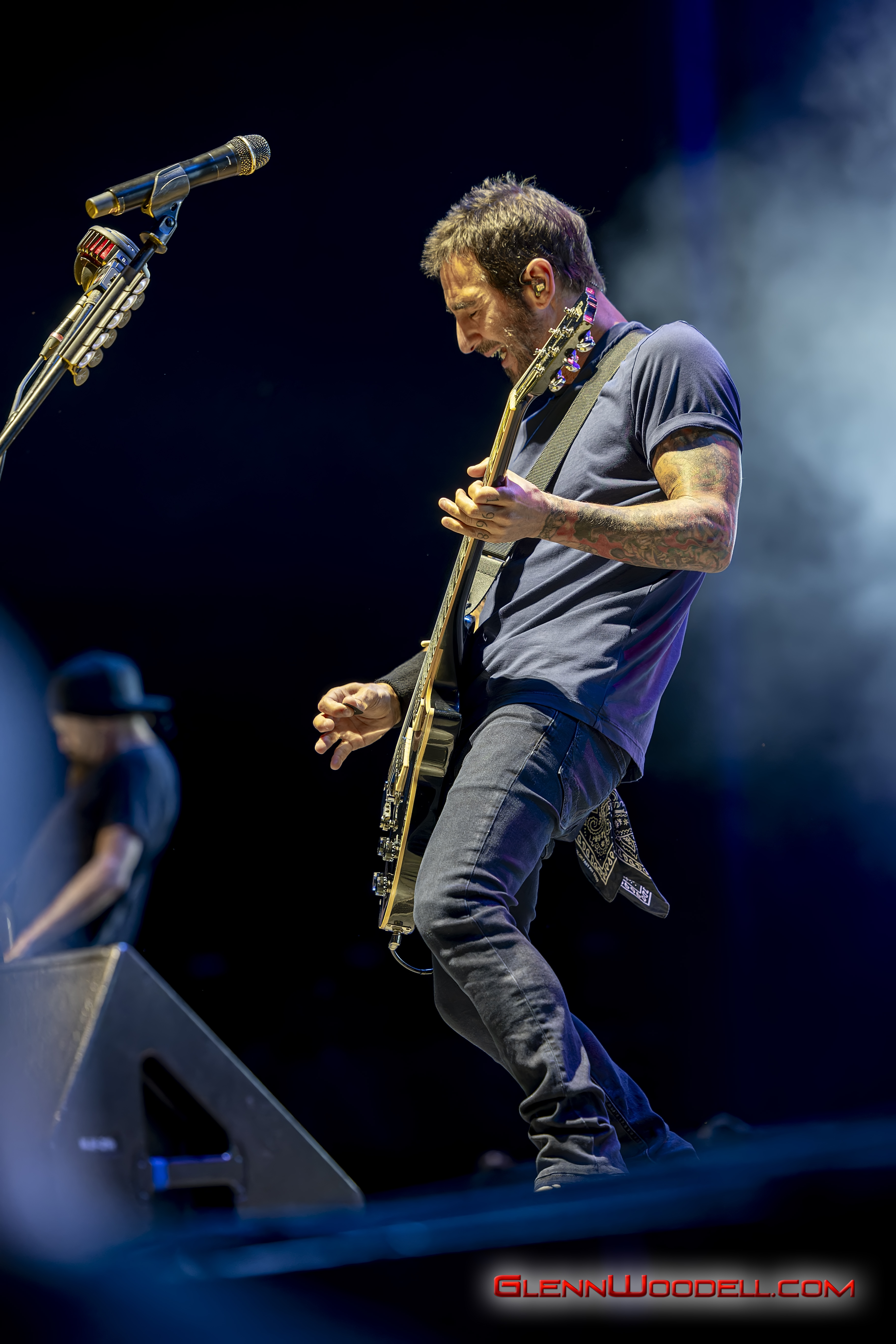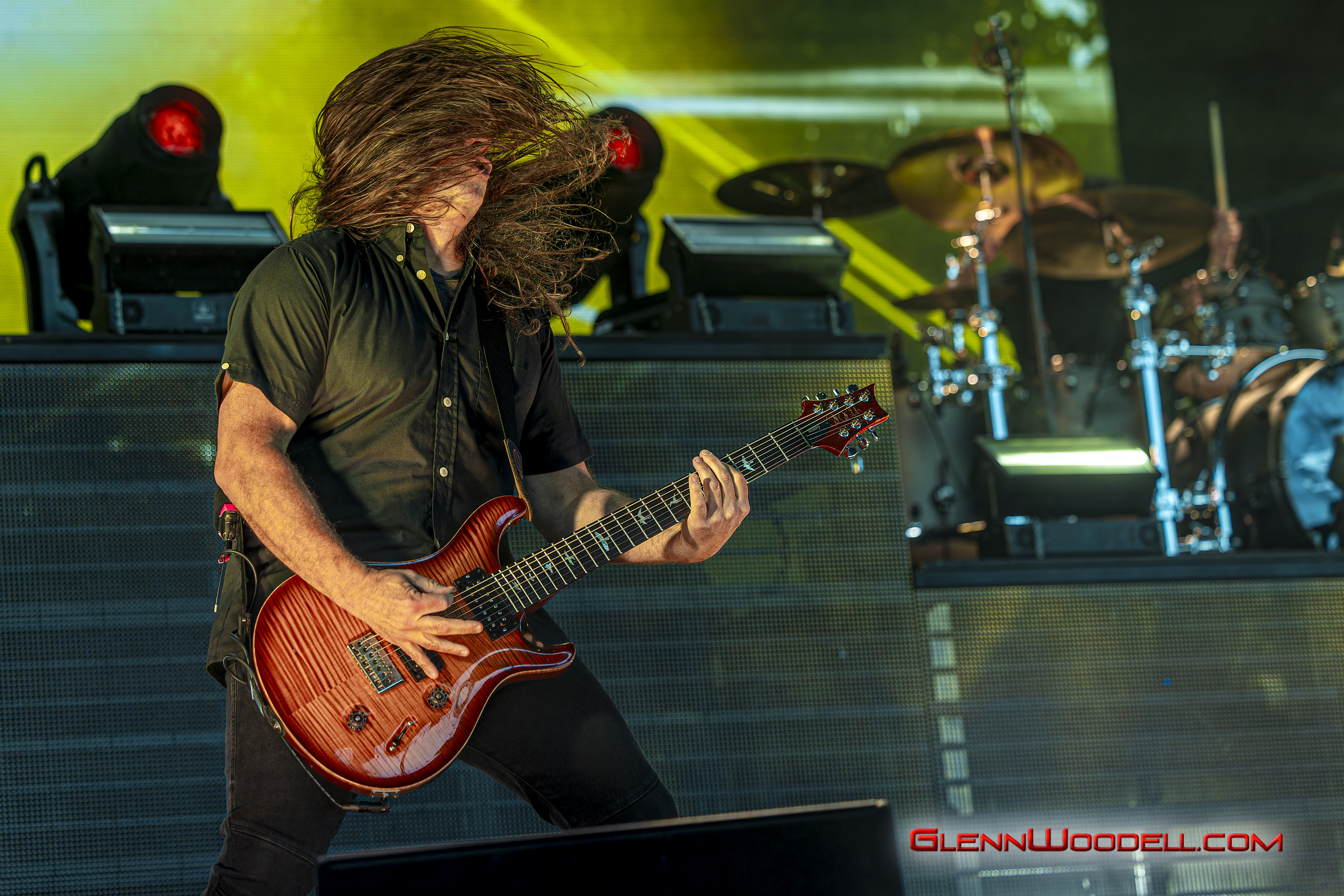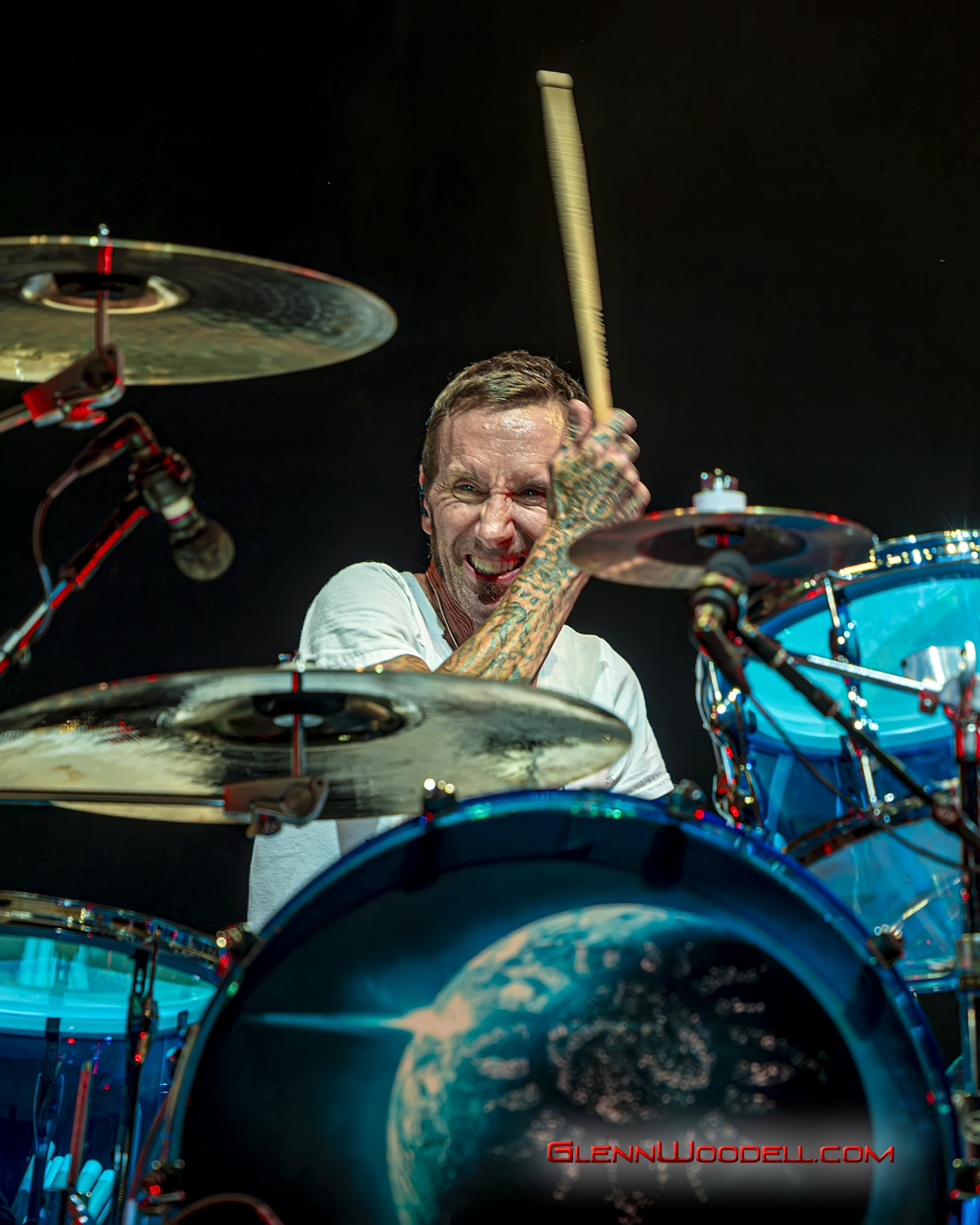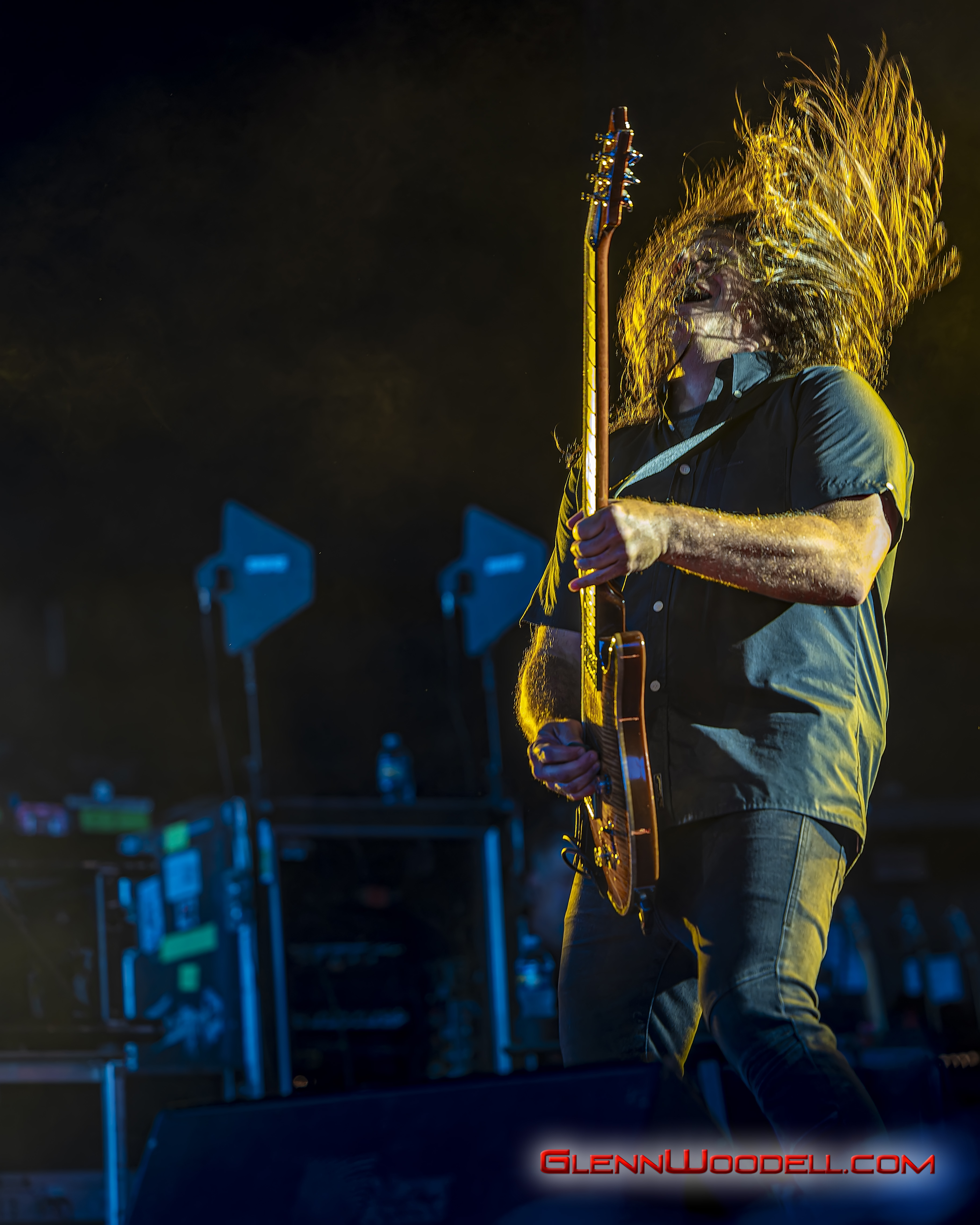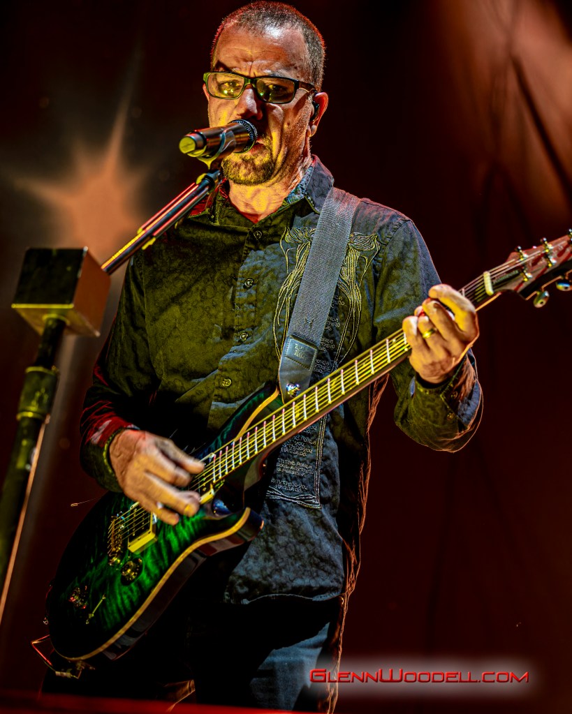 The highlight of the evening was the drum battle with drummer, Shannon Larkin, called, Batalla de los Tambores. It’s been performed in the past with some changes but I had never seen it until this show. Near the end of Voodoo, Sully left the stage. Shannon started the drum show while his drum riser shifted off-center. Sully’s drums came through the curtains with him playing the bongos in unison with Shannon’s drums. From there, the two played some amazing drum riffs over the next nine minutes, sharing pretty impressive drum stick tosses, and broke into the familiar songs, AC/DC’s Back in Black, Aerosmith’s Walk this Way, Metallica’s Enter Sandman, Led Zeppelin’s Moby Dick, and Rush’s Tom Sawyer.