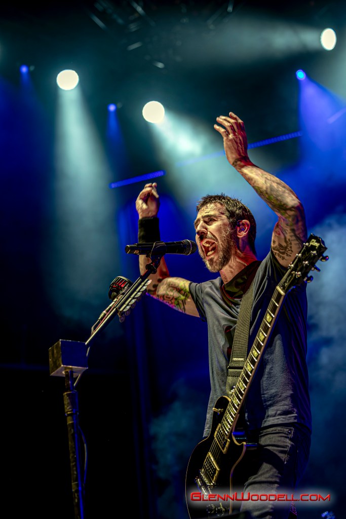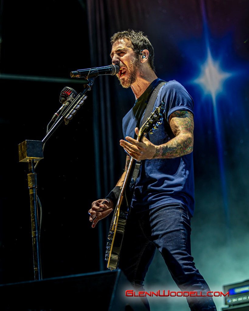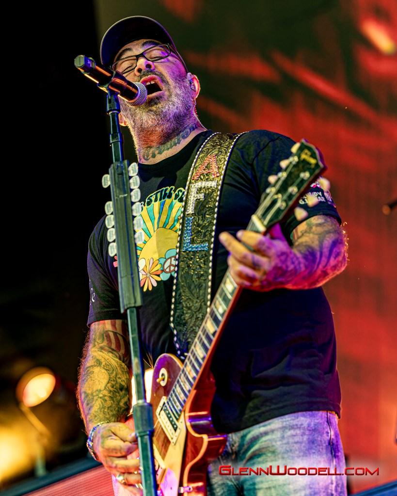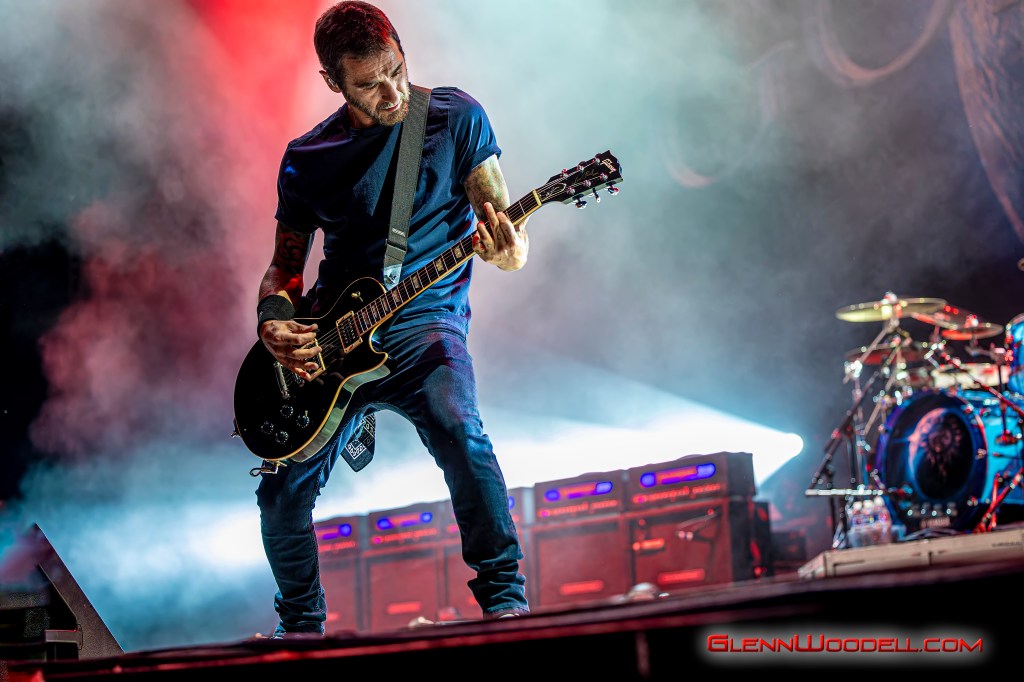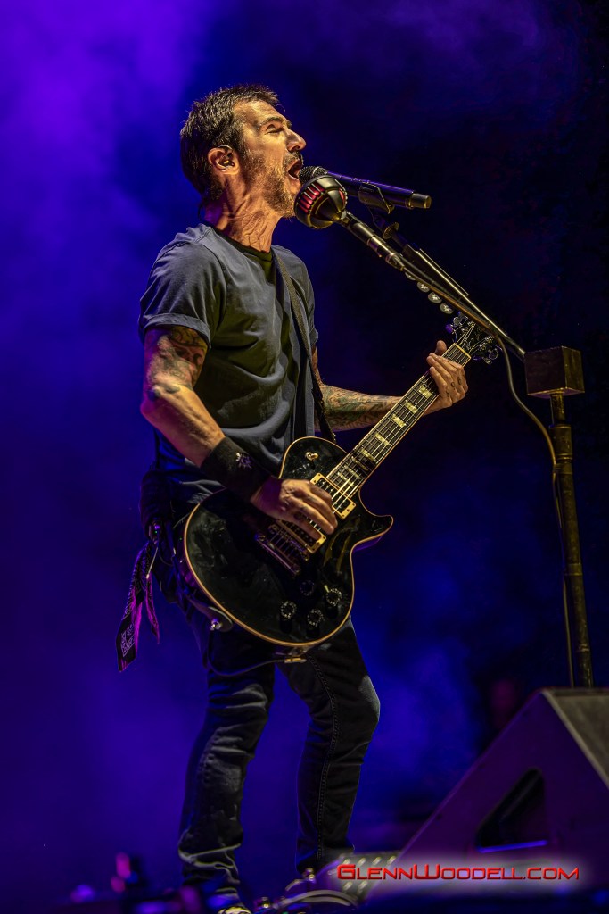 While Staind’s Arron Lewis is more reserved with his presentation, Sully Erna is much more in touch with the audience. For the last few years, Erna has invited the strong men of the crowd to lift up their women and he repeated the invitation here. At one point, he shared a drink with one of the audience members, but not until checking his ID to make sure he was old enough even though he had gray hair.