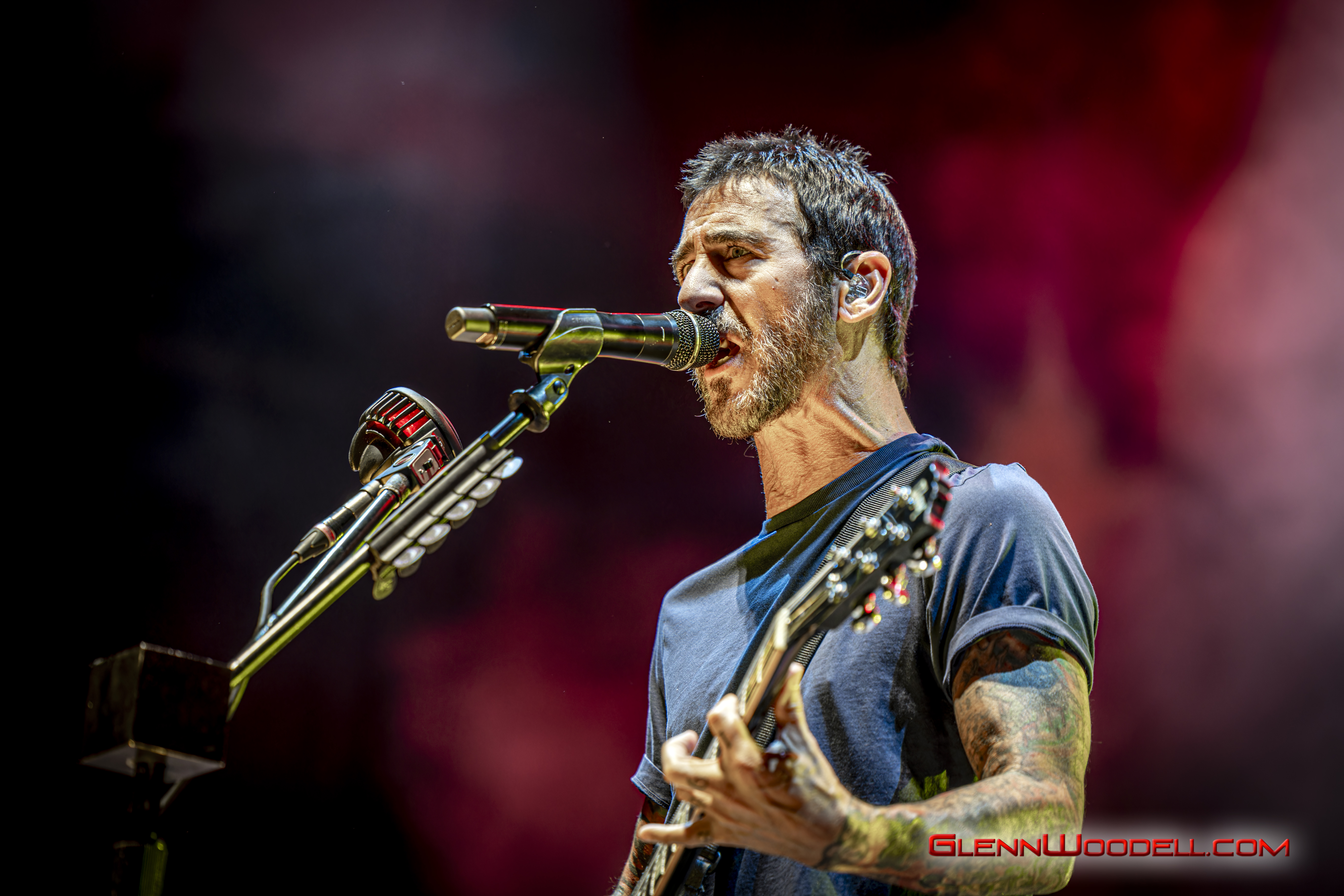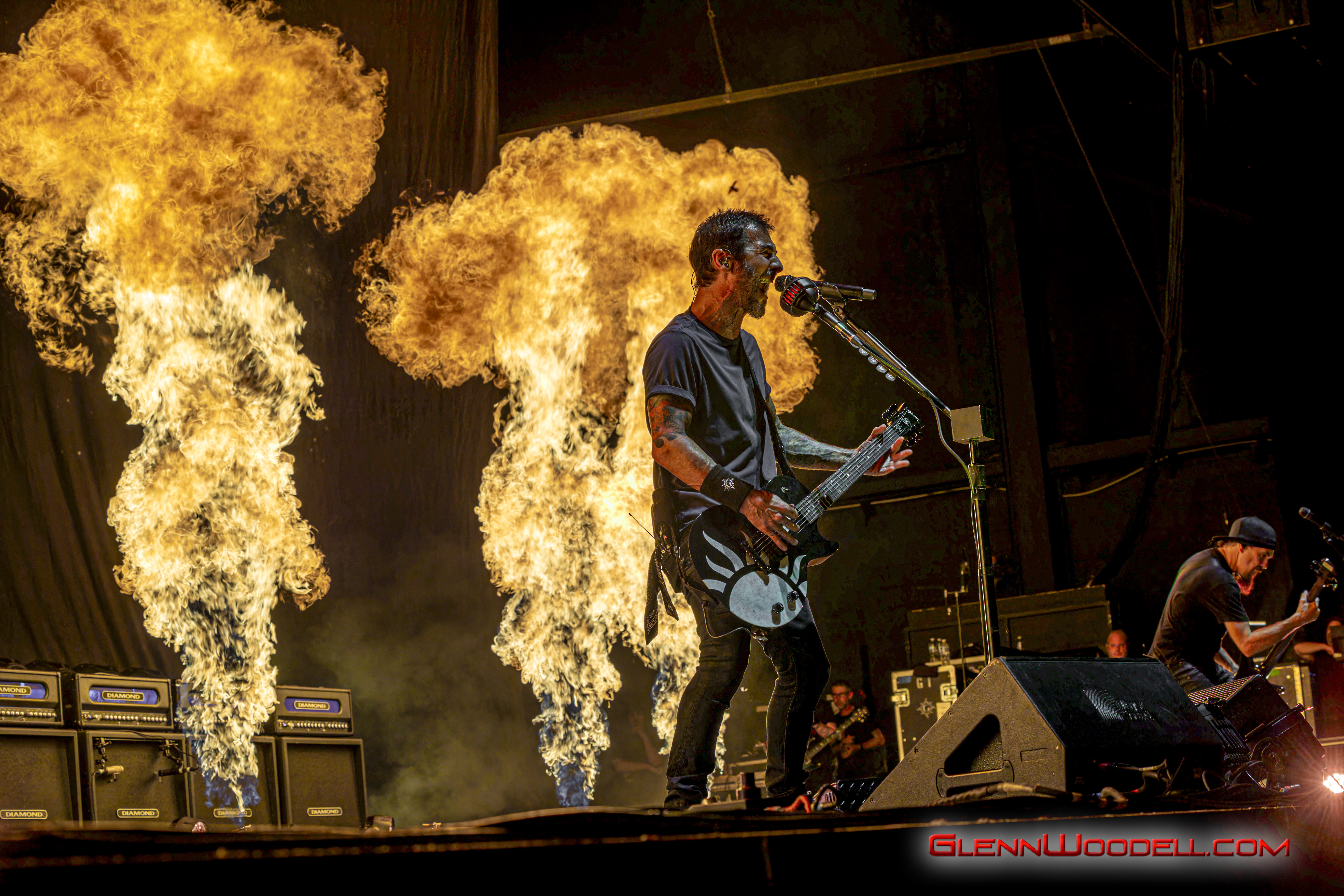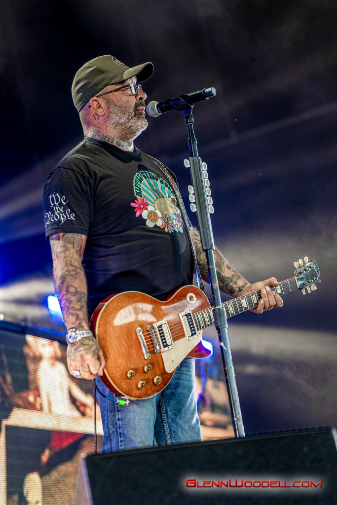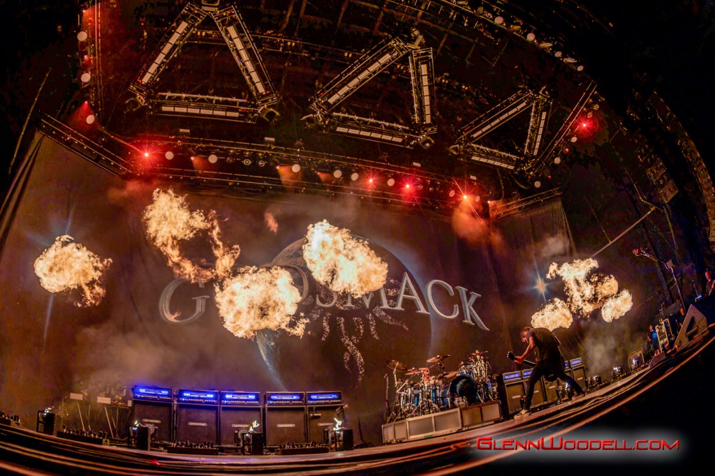 While Staind’s Arron Lewis is more reserved with his presentation, Sully Erna is much more in touch with the audience. For the last few years, Erna has invited the strong men of the crowd to lift up their women and he repeated the invitation here. At one point, he shared a drink with one of the audience members, but not until checking his ID to make sure he was old enough even though he had gray hair.