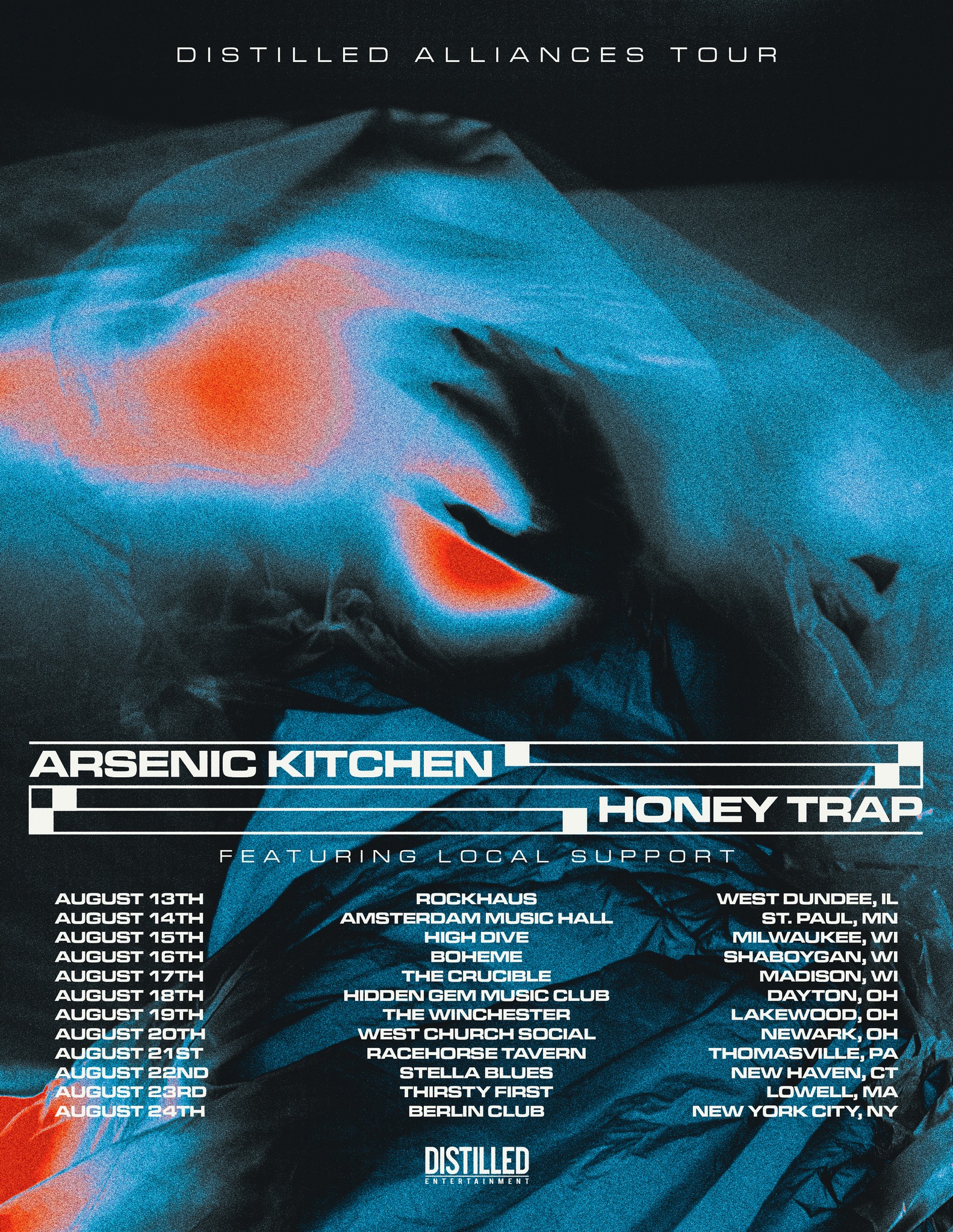Rising from the underground with a fierce bite and a cinematic swagger, Arsenic Kitchen has announced their most ambitious trek yet—“The Distilled Alliances Tour,” an eruption of raw energy, genre-defying soundscapes, and visceral storytelling that only Arsenic Kitchen can deliver. An 11 city tour starting in Chicagoland on August 13 and culminating in New York City on August 24.