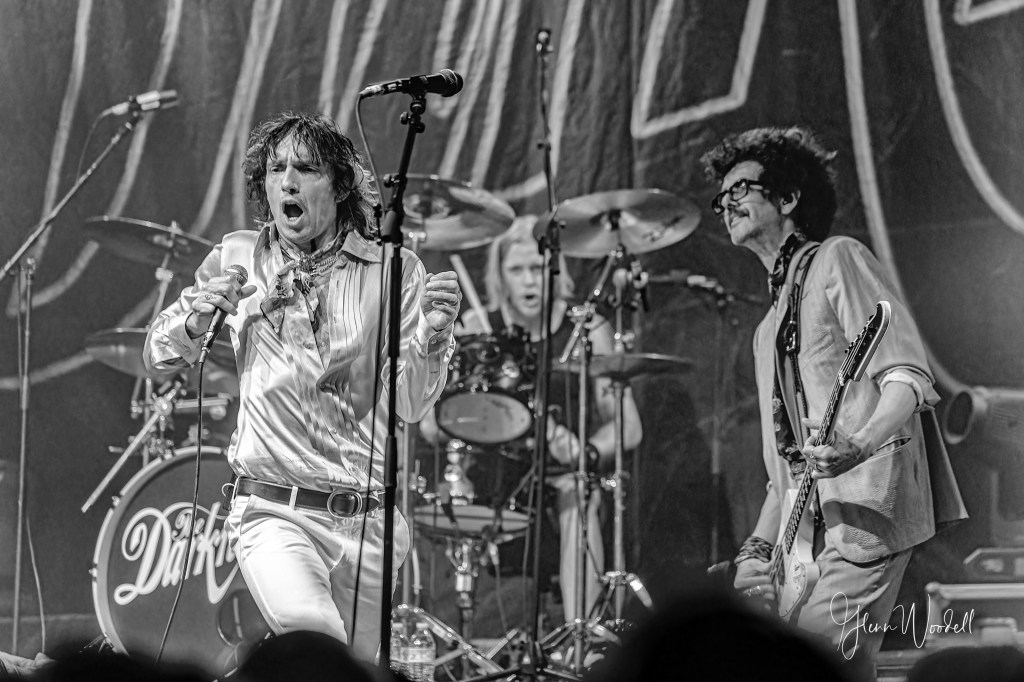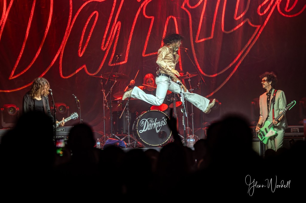 The Darkness ended the set with a version of their popular hit, “I Believe in a Thing Called Love”, that varied between a reggae ballad, eventually turning into the popular version that everyone sang along with.