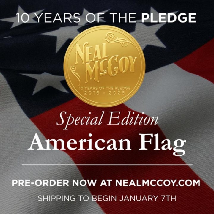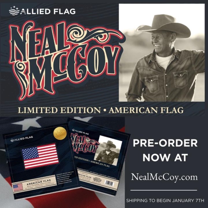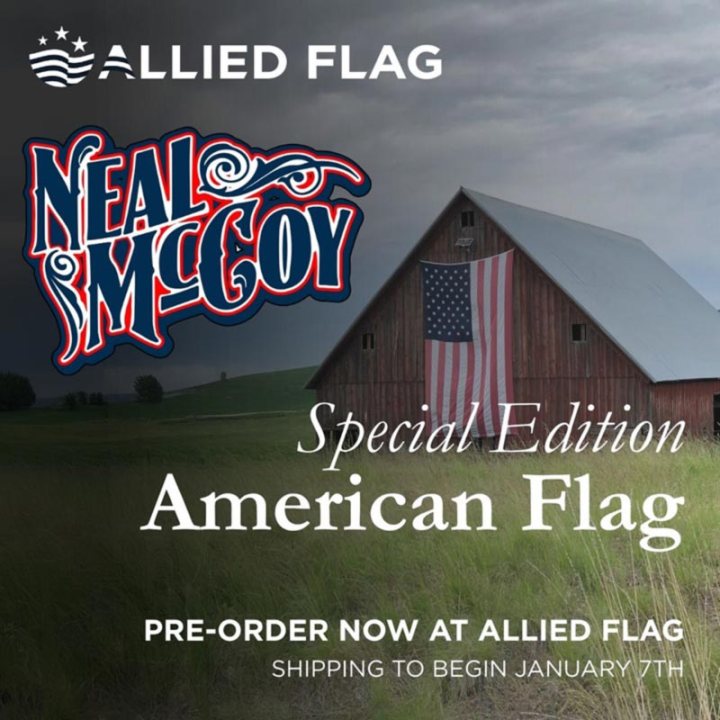 | KANSAS CITY, Mo. – Neal McCoy, country music hitmaker and American patriot, has partnered with Allied Flag, America’s premium manufacturer of 100% American-made flags as part of the lead-up to the 10th anniversary of his live daily reciting of the “Pledge of Allegiance” on Facebook/Meta. “I started saying the Pledge of Allegiance on Facebook over nine years ago and I have not missed a day,” says Neal McCoy. “I have some great memories of saying the Pledge daily at school and always wanting to help raise or lower the Flag each day, so having this opportunity to work with Allied Flag is exciting for me because our partnership gives us the opportunity to now share with a lot of other folks around our wonderful country Allied Flag, an all-American Flag company, that will help bring back some of those great memories.” “The first version of the Pledge was written in 1885, 140 years ago. In 1954, the words ‘Under God’ were added and a year later it was sung for the first time, in 1955 (70 years ago), by the Air Force choral group the ‘Singing Sergeants’ on the floor of the House of Representatives on Flag Day,” adds McCoy. McCoy, a two-time Entertainer of the Year and multi-gold and platinum selling country music artist, combined with Allied Flag, the company that has supplied American-made textiles to federal agencies serving America’s veterans, Department of Defense (DoD) and GSA is a natural fit as both brands support American values. “Neal’s voice has carried the Pledge into millions of homes, reminding us that faith, family, and country still matter in America. At Allied Flag, those same values guide every stitch we sew. Standing together with Neal is more than a partnership; it’s a celebration of the American spirit we both cherish,” says Tyler Young, President, Allied Brands. Allied Flag will launch a special American Flag that will be boxed in a special custom designed package including McCoy’s name and likeness. These limited-edition packaged American flags will be available at AlliedFlag.com or NealMcCoy.com for pre-order on December 22nd and will ship on January 7th, to coincide with the 10th anniversary. About Allied Flag:Celebrating its 75th anniversary in 2026, Allied Flag is America’s premium manufacturer of 100% American-made flags, proudly crafting every star, stripe, hem, and stitch in the United States to the highest government specifications. For decades, Allied Flag has stood for unmatched craftsmanship, authenticity, and patriotism—ensuring that the symbol that represents our nation is made in the heartland of the very country it stands for. As America approaches its 250th anniversary, Allied Flag continues its mission to unite Americans under one enduring emblem of freedom, sacrifice, and national pride. From homes and farms to schools, businesses, and government institutions, Allied Flag is honored to help Americans everywhere raise the flag with pride. More information is available at AlliedFlag.com. |