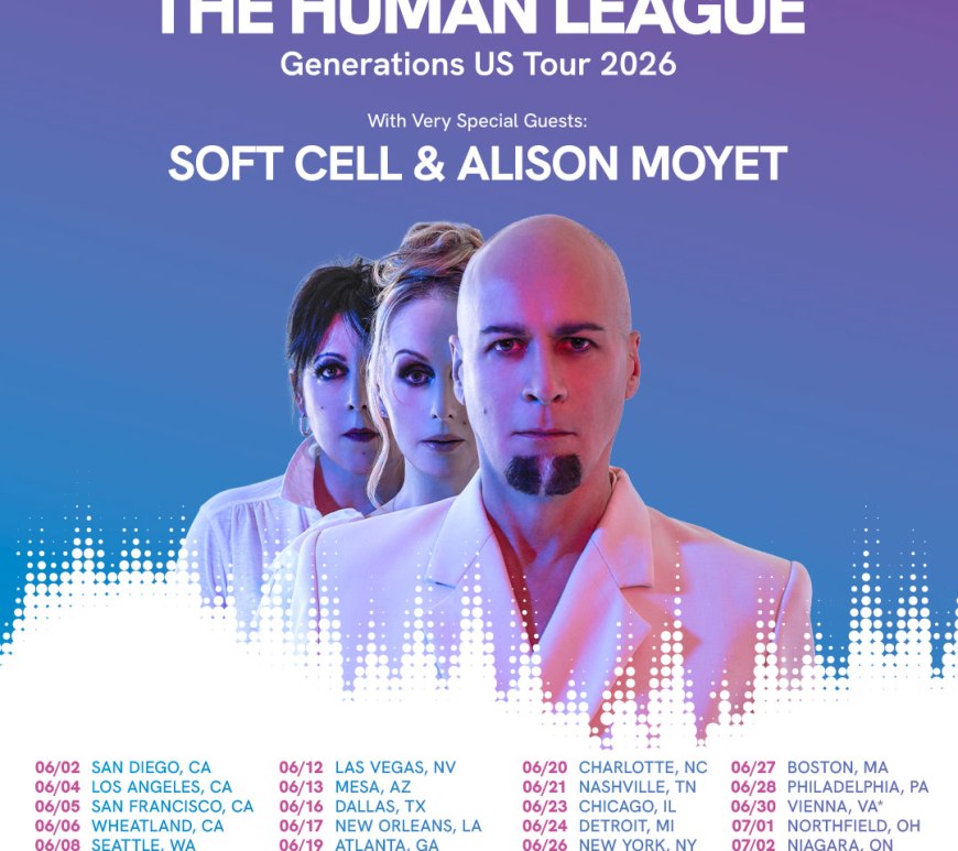 North American Tour Kicks off June 2nd in San Diego, CA Artist Presale: Wednesday, January 21st at 10am Local TimeLocal/Venue Presale: Thursday, January 22nd at 10am Local TimeSpotify Presale: Thursday, January 22nd at 12noon Local TimeGeneral On Sale: Friday, January 23rd at 10am Local Time * Note: All Presales end on Thursday, January 22nd at 11:59pm Local Time JANUARY 20, 2026 [New York, NY] – Collecting … Continue reading THE GENERATIONS TOUR Brings Together Three Iconic British Artists THE HUMAN LEAGUE, SOFT CELL, and ALISON MOYET