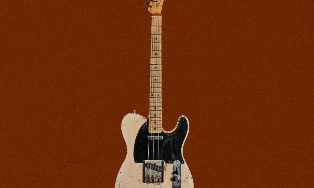 It’s a white 1953 Fender Telecaster that Gill bought for $450 in 1978 from Del City Music in his native Oklahoma, and it’s been Gill’s main guitar ever since. “It’s real special,” he remarks. “I’ve got several other old Fender Telecasters, but that one just suits my hands, suits my ears. Everything about it is kind of a huge part of my entire catalog of playing guitar over all these years.” Testifying to that status is the worn finish on the guitar’s body.