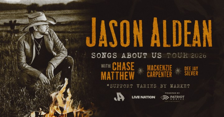 NASHVILLE, Tenn. – (February 27, 2026) – On the heels of his milestone 31st career #1 at Country radio, Grammy-nominated entertainer Jason Aldean today announced his upcoming 22-city 2026 Songs About Us Tour, sponsored by Patriot Mobile. After topping the charts with his hit single, “How Far Does A Goodbye Go,” last week, the award-winning singer/songwriter today released three surprise tracks from his forthcoming album Songs About Us, out April 24th. Produced by Live Nation, the Songs About Us Tour begins Thursday, July 16 at Maine Savings Amphitheater in Bangor, Maine and continues through the end of September with numerous stops across North America including Fresno, Kansas City, Hamilton, Ontario and more. Artist presale tickets are available starting March 3rd, with general on-sale March 6th at LiveNation.com. Chase Matthew, Mackenzie Carpenter and Dee Jay Silver serve as support.
