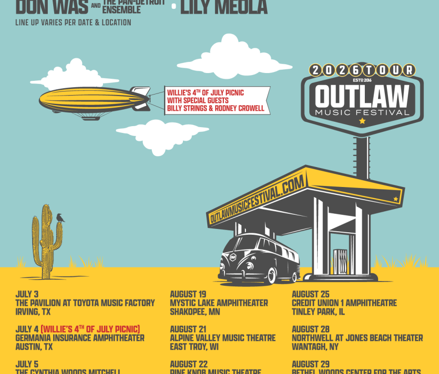 NEW YORK, N.Y. – Willie Nelson, Mark Rothbaum, Keith Wortman, Blackbird Presents, and Live Nation proudly announce the return of the 2026 Outlaw Music Festival Tour as it enters its second decade on the road. Following last year’s milestone 10th anniversary, which Rolling Stone hailed as “undoubtedly the most exciting and eclectic multi-artist festival of the 2025 summer amphitheater season by a wide margin,” the festival ushers in a new era, continuing its tradition of unforgettable music and community that has made it a true cultural phenomenon.