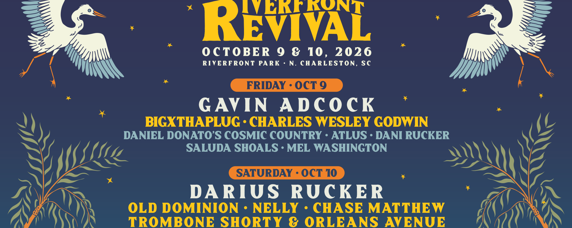 “Riverfront Revival has always been about bringing great music and great people together in a place that means everything to me,” reflects Rucker. “Getting to build this in Charleston year after year has been incredible, and this lineup shows how much it’s grown while still staying true to what the festival is all about.”