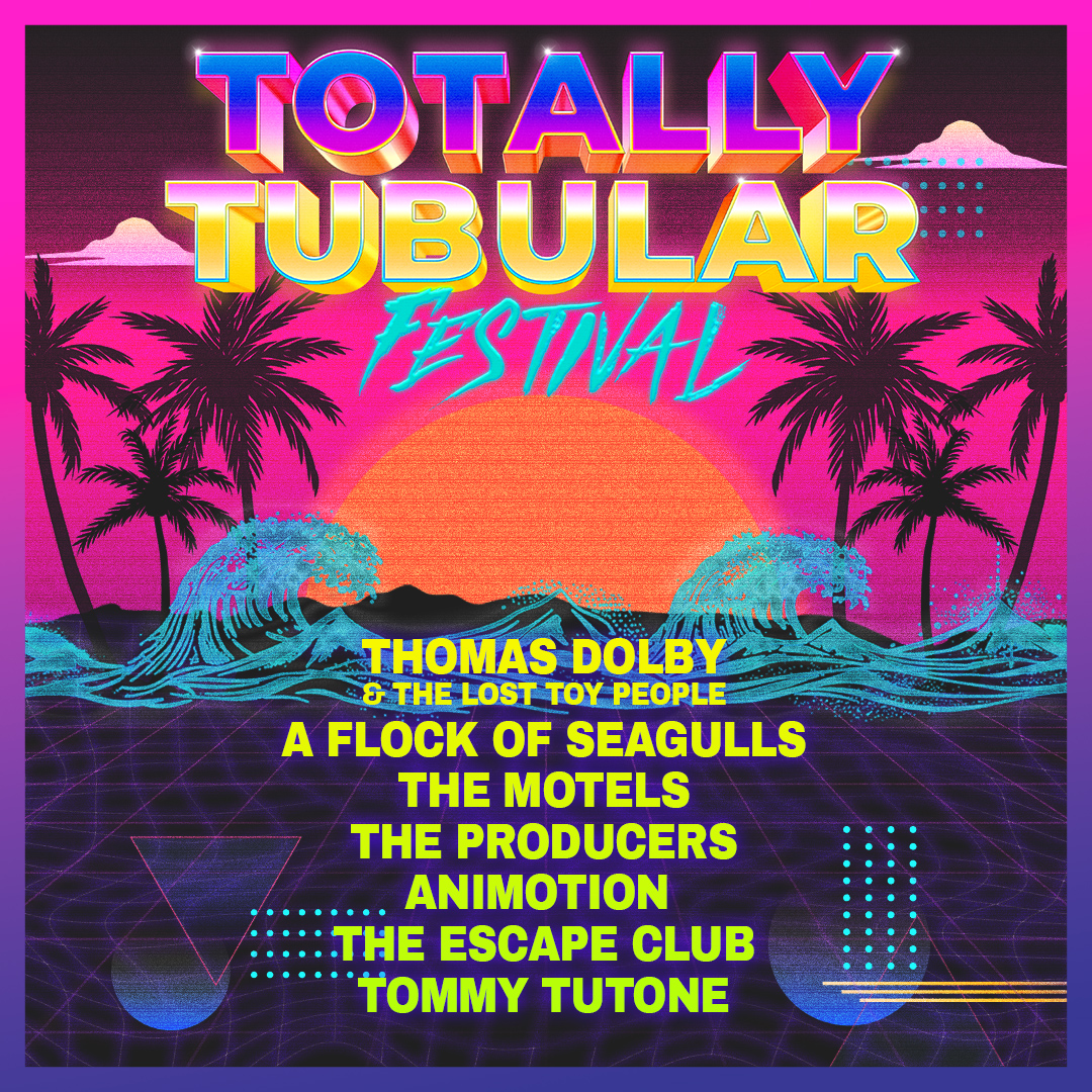 | TOTALLY TUBULAR FESTIVAL—the acclaimed multi-act ‘80’s extravaganza which originated in 2024—returns for a full 2026 summertime tour of the US launching July 17 in Phoenix and wrapping August 16 in Aurora, IL. The colorful lineup features Thomas Dolby & The Lost Toy People, A Flock Of Seagulls, The Motels, The Producers, Animotion, The Escape Club, and Tommy Tutone. See the tour dates and artist quotes below. Tickets will go on sale nationally on Friday, April 24 (10am local time). This will be the first time Thomas Dolby & The Lost Toy People have performed together since 1988; their last show was at the Rose Bowl supporting Depeche Mode. This will also be the first time in over 25 years that The Producers (original lineup) will tour the US nationally coast to coast. The 2026 tour comes on the heels of a hugely successful holiday tour of the Northeast. This year’s trek will hit 15 markets, including Phoenix, Denver, San Francisco, Anaheim, Hollywood, Las Vegas, New Town, ND, Washington, DC, Atlantic City, New York City, Louisville, St. Petersburg, Huber Heights, OH, and Aurora, IL with more dates to be announced. The artists performing at this year’s TOTALLY TUBULAR FESTIVAL exploded in the pop culture zeitgeist in the 1980’s thanks mainly to the high rotation of their music videos on MTV. These artists have enjoyed a steady rise in popularity in recent years, with their music having a lasting impact. “Totally Tubular Festival has clearly emerged in just two years as the market leader for all 80’s tours in North America, not to mention Totally Tubular is hands down the best 80’s party on the planet,” says Jon Pleeter, the festival’s creator. “For all of the fans of 80’s new wave music, the Tubular circus is coming to town—we’ll see you this summer.” The TOTALLY TUBULAR FESTIVAL 2026 shows are: |